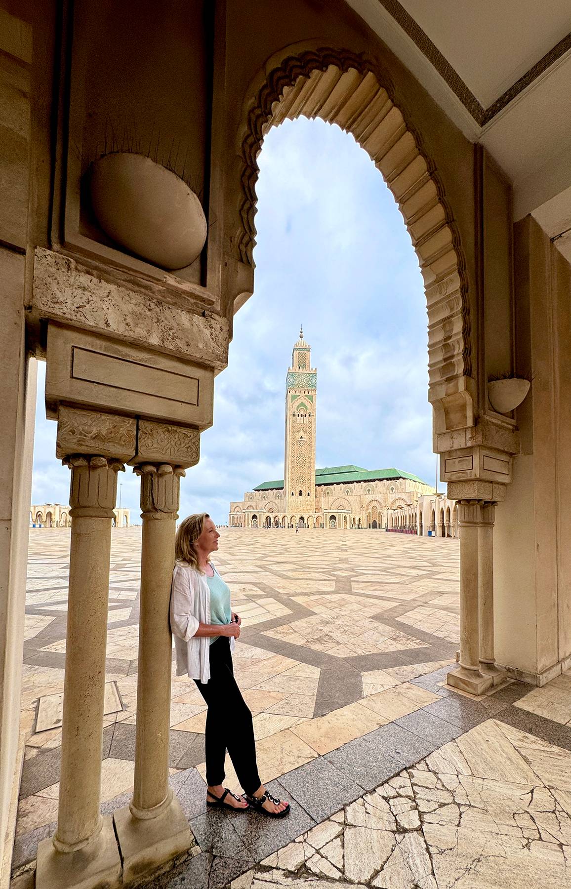 Here’s an example: on my visit to the Hassan II Mosque in Casablanca this year, a friend photographed me using the framing technique. The arch becomes a built-in picture frame, directing attention to both the subject and the mosque behind. It adds depth and atmosphere, turning a wide-open space into a striking and purposeful composition.